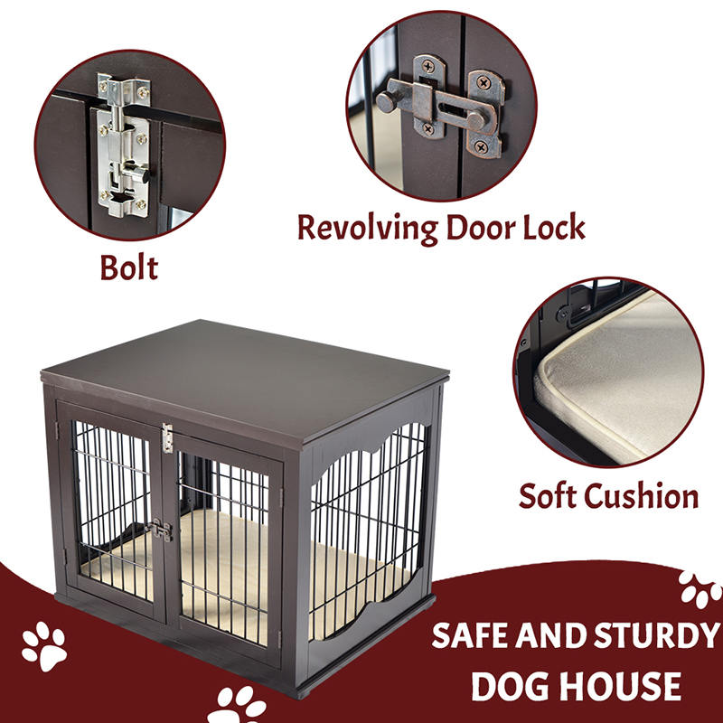 1. Safe und sorgfältiges Design: Möbelstil-Hundekäfig ausgewählter hochwertiger Holz- und kohlenstoffarme Stahldraht mit Doppelsicherungstürschlössern, Allround-Schutz der PET-Sicherheit.