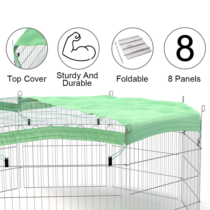 1. Allround Protection: Metal Dog Playpen's atmungsaktives und sonnensicheres Top-Cover-Design bietet einen bequemen Schatten für Haustiere im Sommer. Schleifenverriegelungssicherheitstür -Design, kombiniert bequemer Zugang und Schutz.